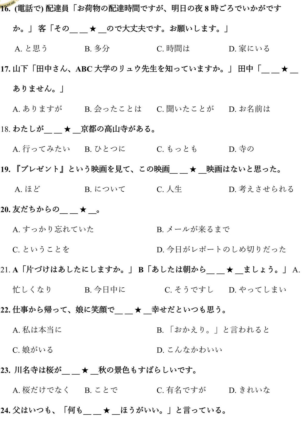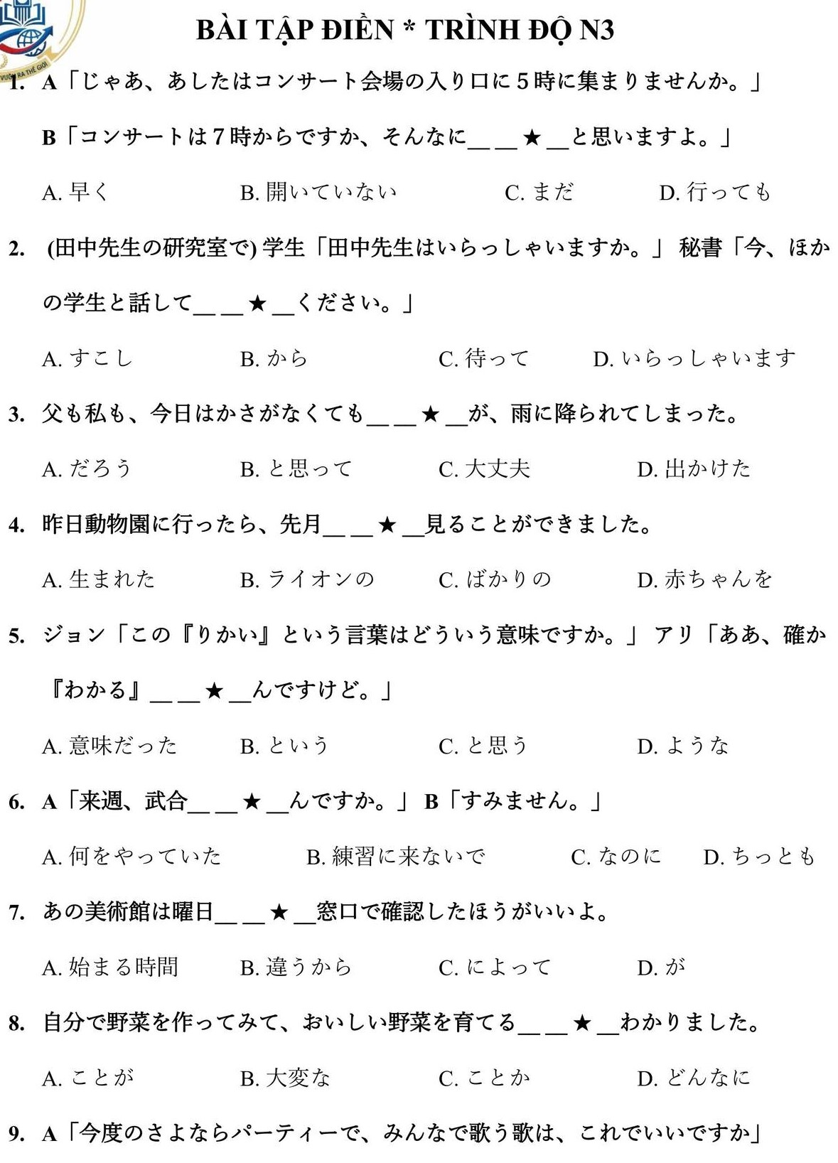 1000 JLPT N3 Grammar Questions (with Answers)