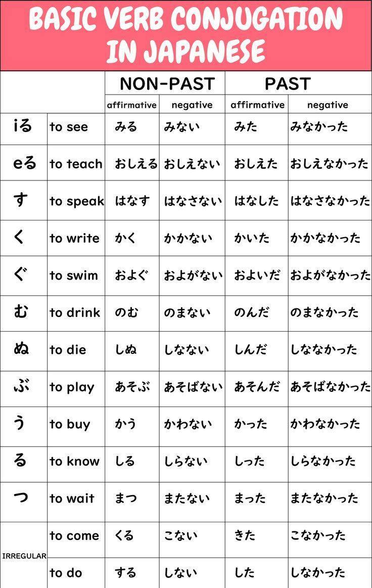 Basic Verb Conjugation In Japanese Basic Verb Conjugation In Japanese Related Post: JLPT N4 Adverbs List Japanese verbs groups 1, 2, 3 list 2024-12-29 Yuri Share