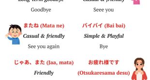 7 Ways to Say “See You” in Japanese 1. またね (matane) →”See you” 2. じゃあね (jaane) →”See you” 3. ばいばい (baibai) →”Good-bye” 4. じゃあまたね (jaa matane) →”See you later” 5. またあした (mata ashita) →”See you tomorrow” 6. またらいしゅう (mata raishuu) →”See you next week” 7. きをつけて (ki o tsukete) →”Take …