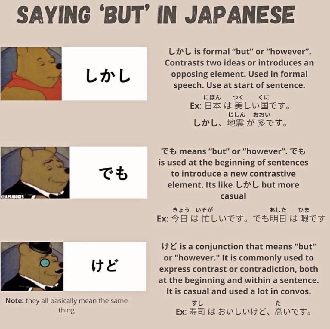 3. けれども (keredomo) – Polite or slightly formal, softer contrast.