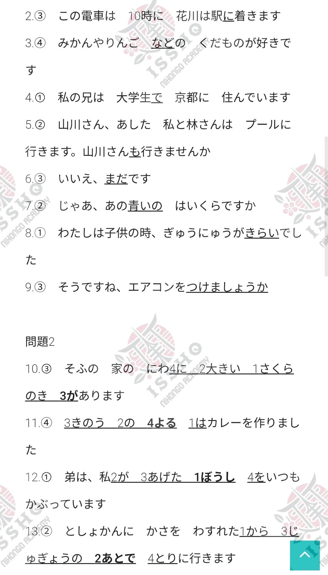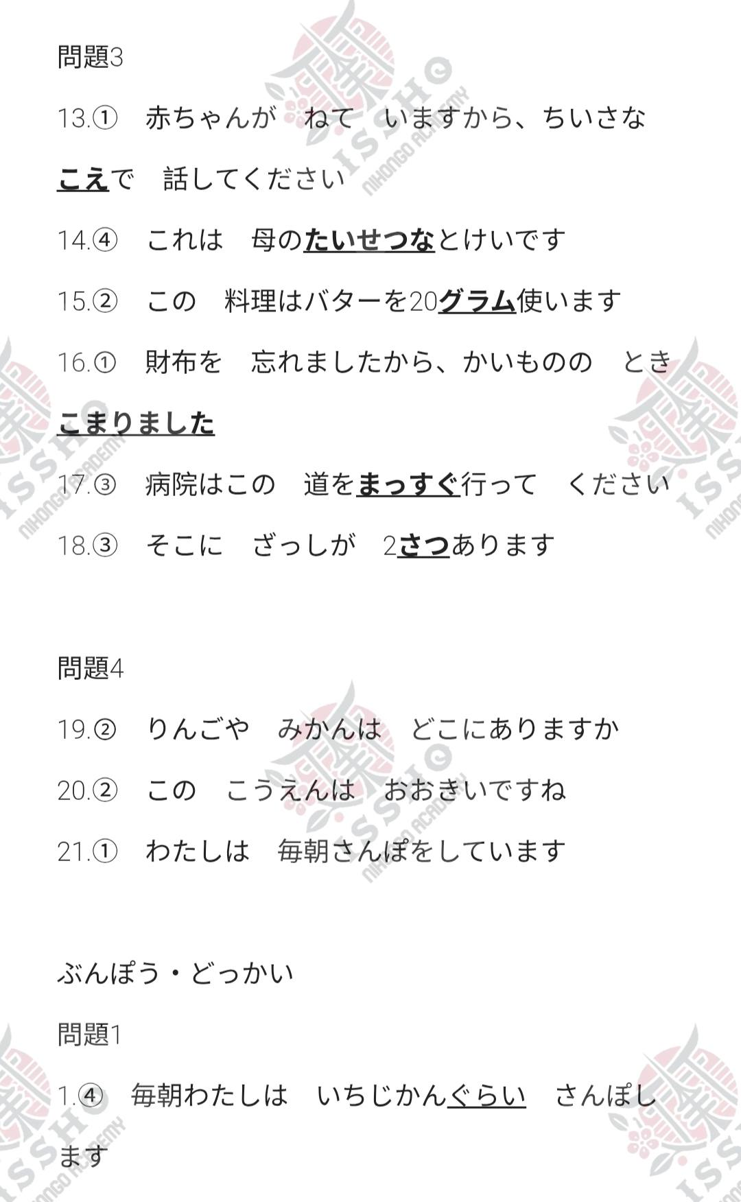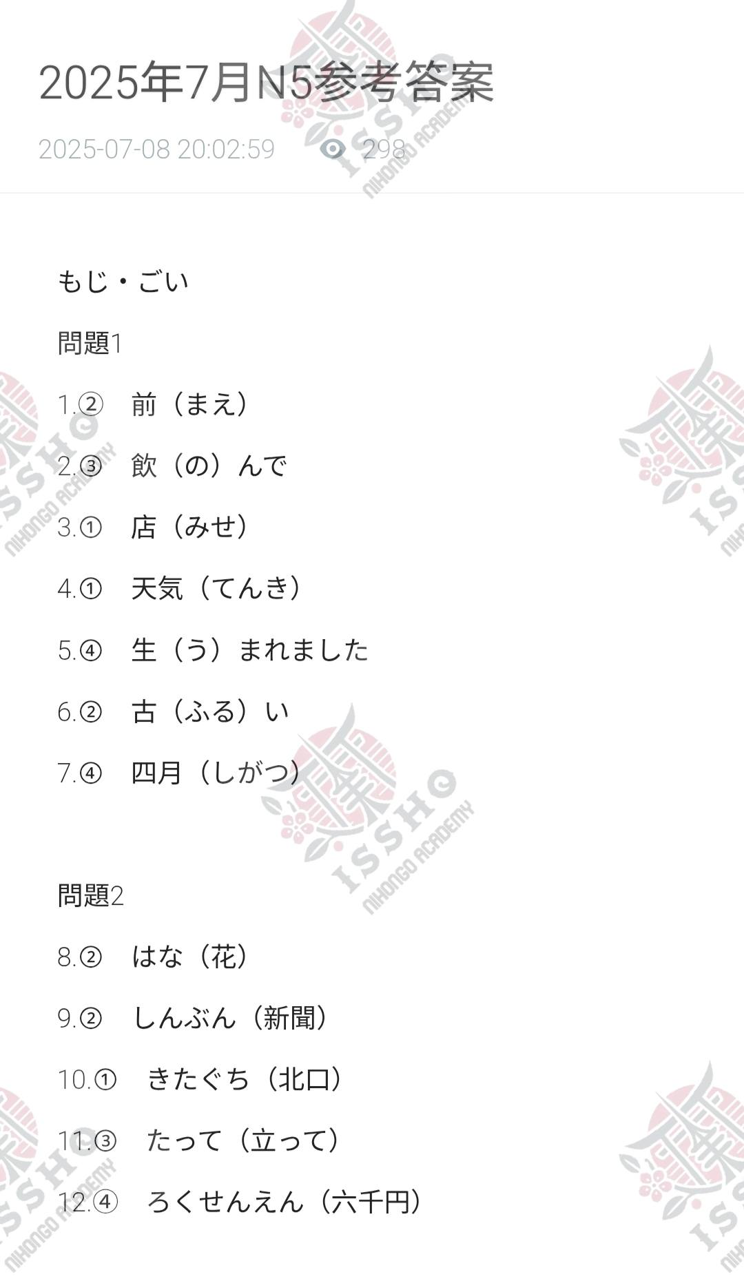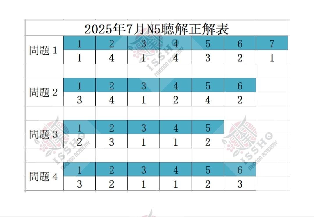 JLPT N5 Reference Answers – 7/2025