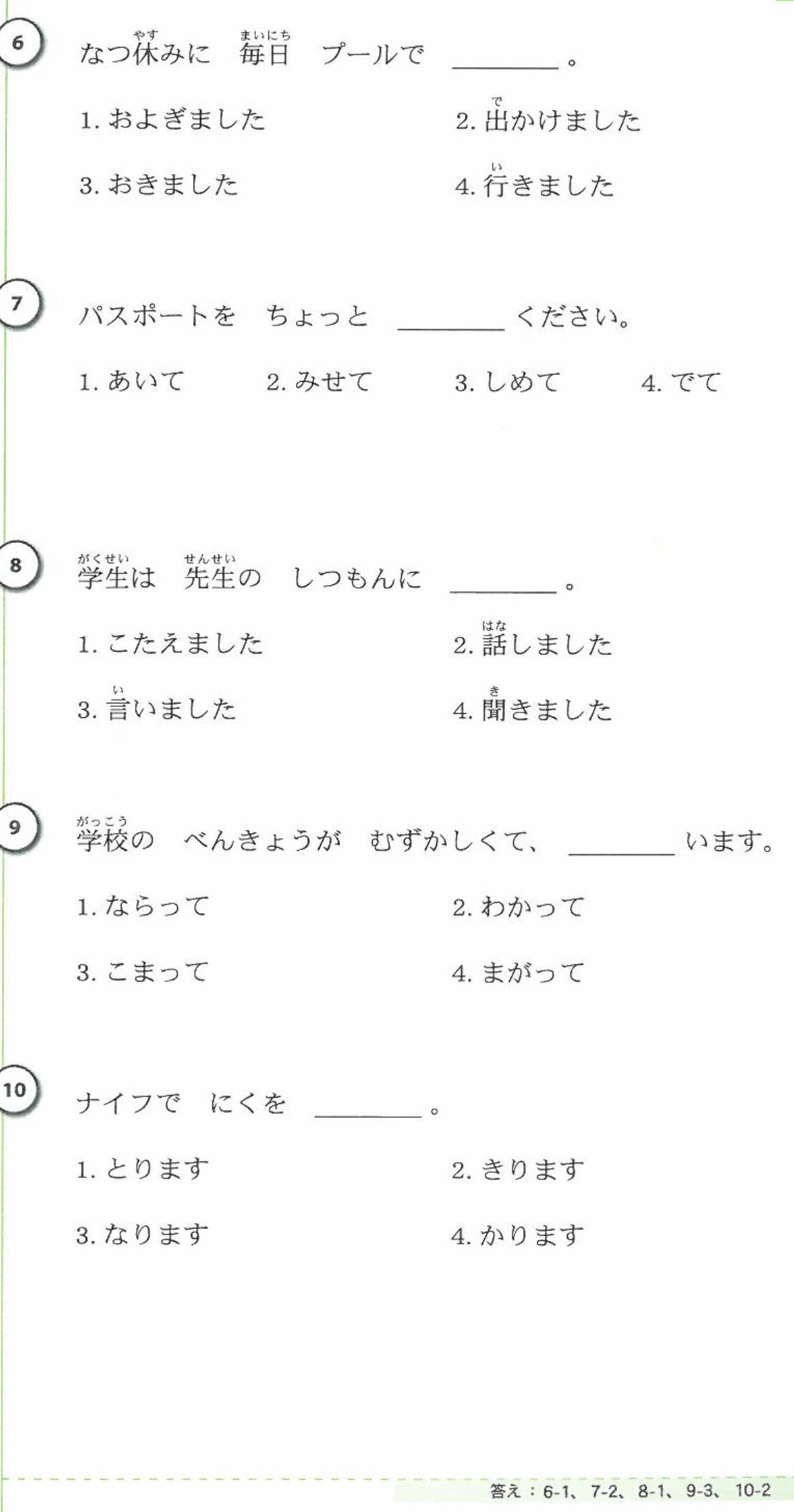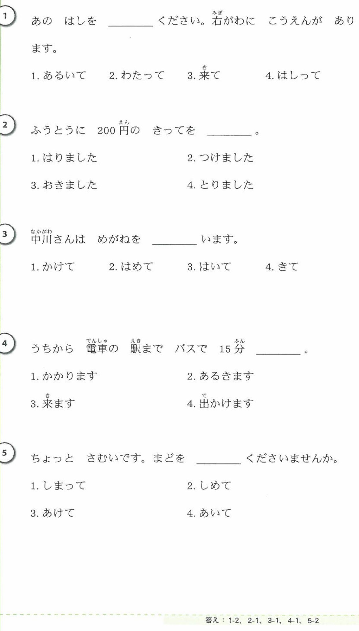 N5 Vocabulary Exercises – Part 4 (with Answers)