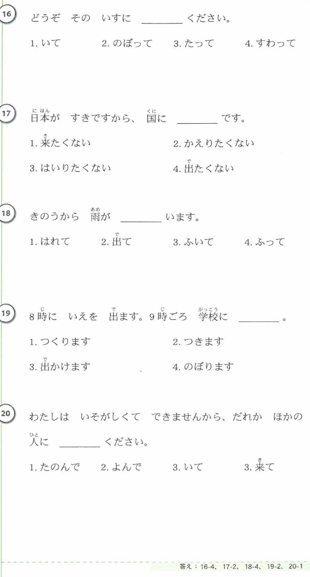 N5 Vocabulary Exercises – Part 4 (with Answers)