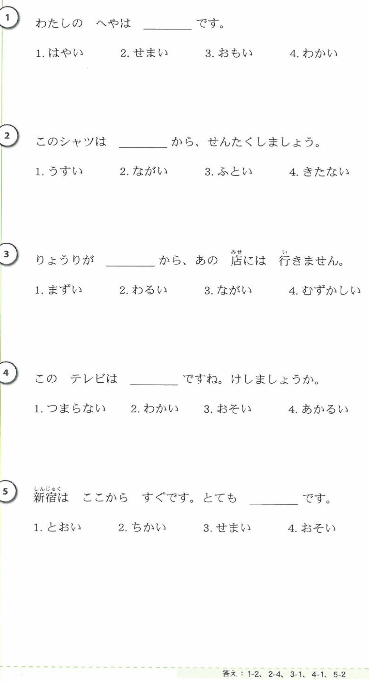N5 Vocabulary Exercises – Part 4 (with Answers)