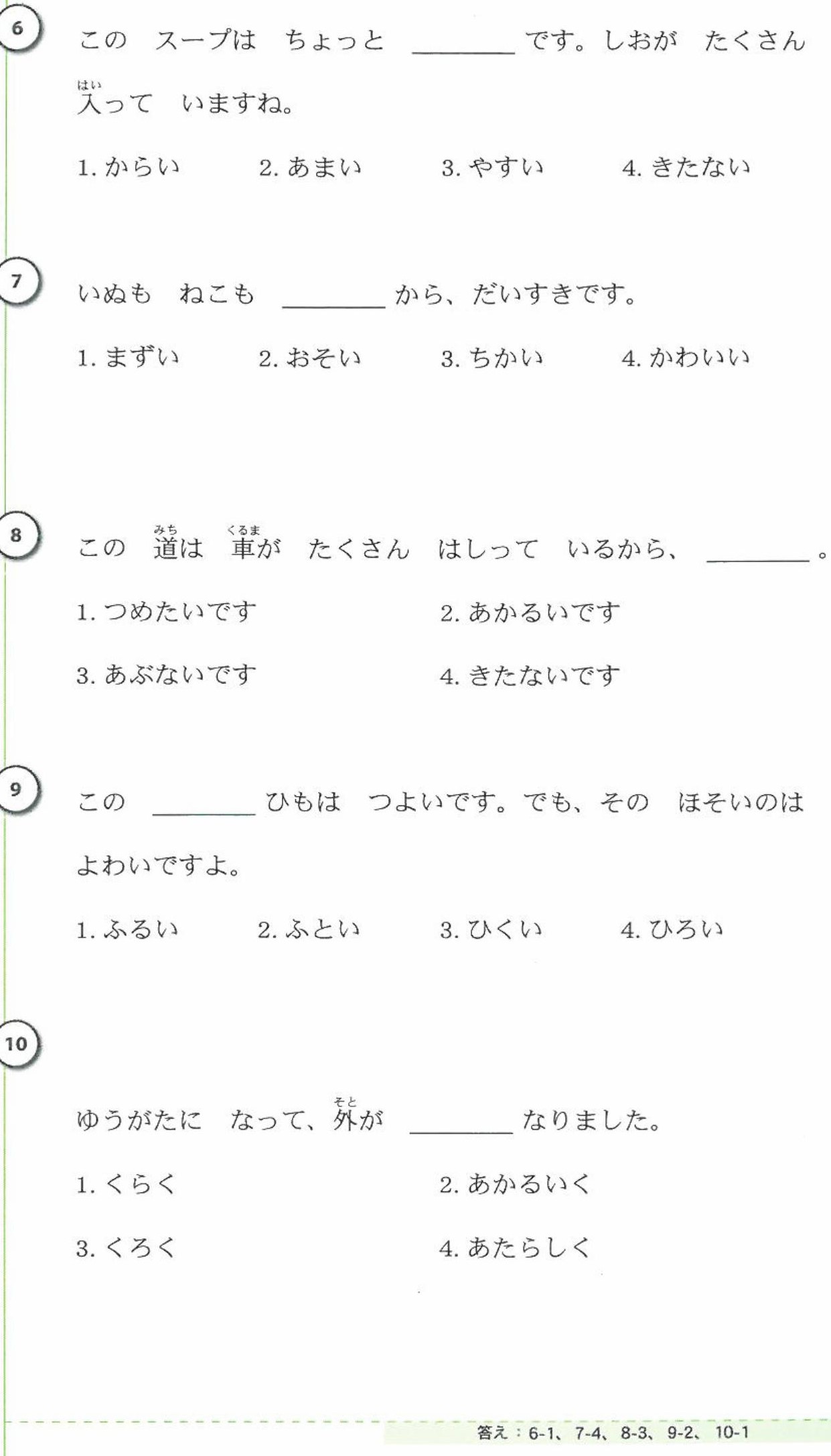 N5 Vocabulary Exercises – Part 6 (with Answers)