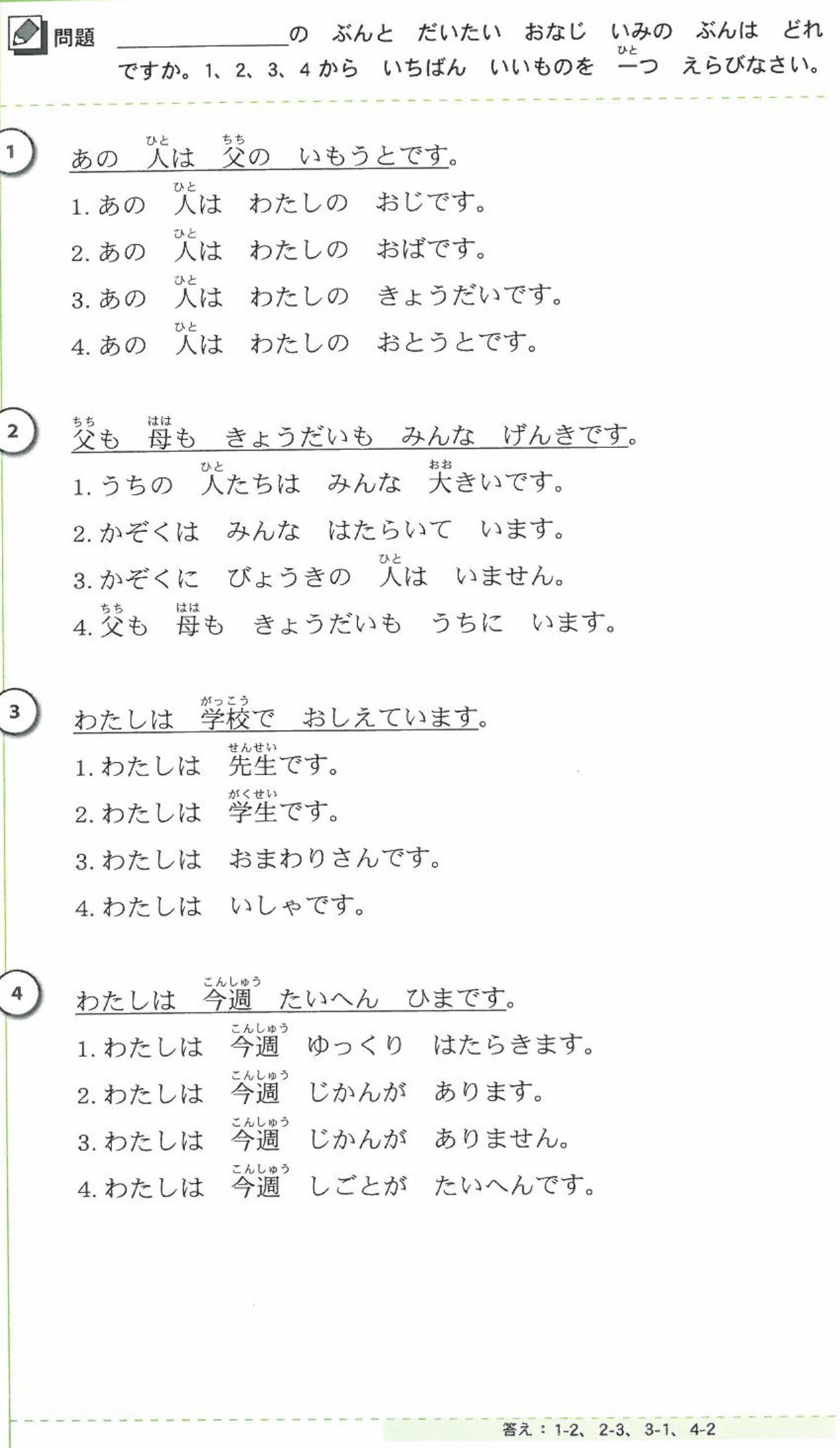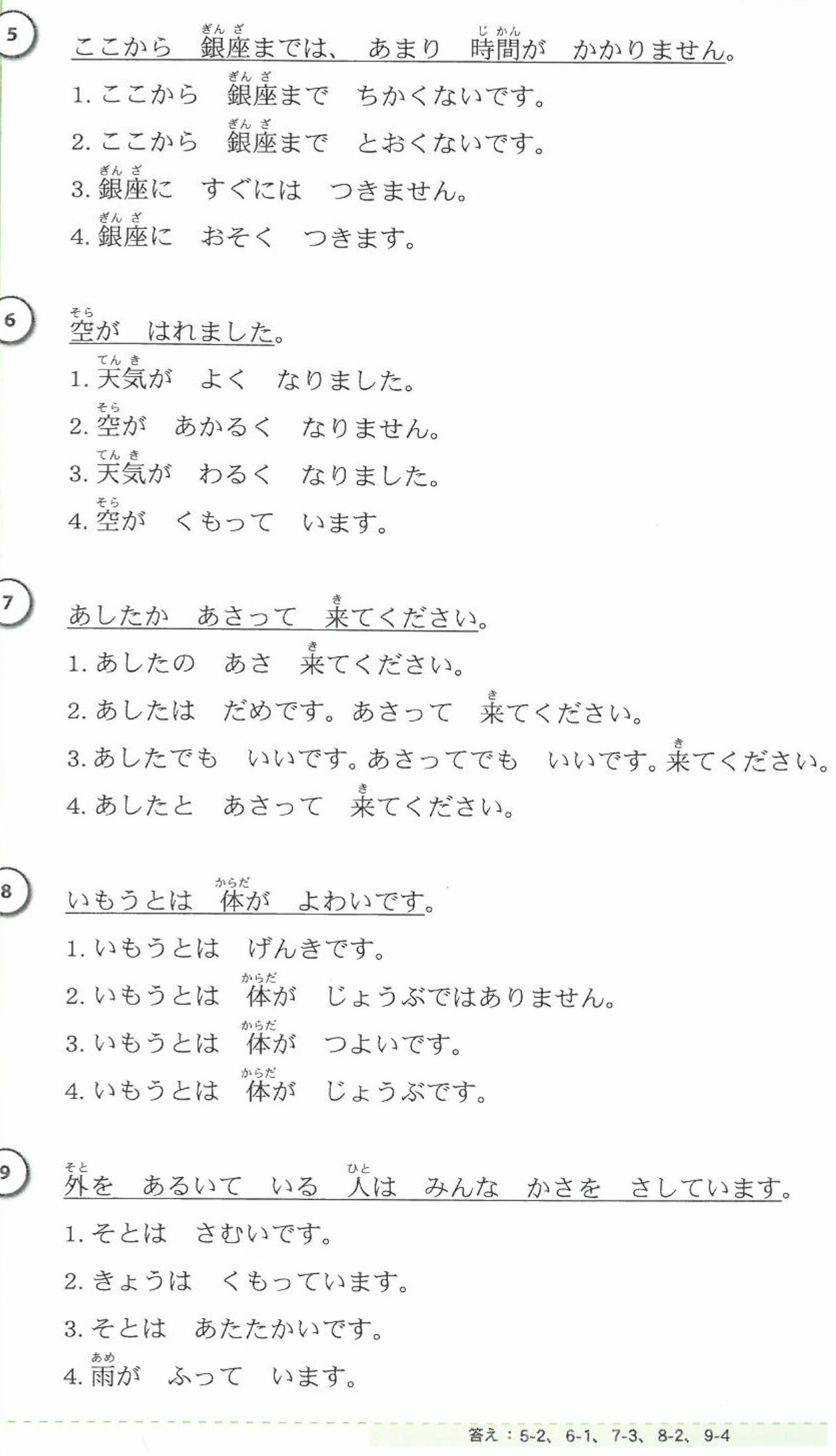 These exercises will help you review JLPT N5.