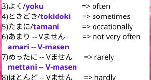 Frequency adverbs in Japanese Most Common Adverbs of Frequency in Japanese Related Post: Japanese Body Parts Vocabulary Japanese vocabulary: Directions