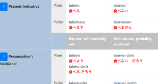 Read More »Conjugation for Japanese verb taberu – to eat 食べる